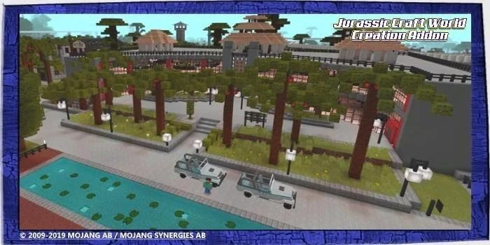Addon Penciptaan Dunia Jurassic Craft World Pada peta ini Anda dapat menjelajahi dunia periode Jurassic. Selain itu, ini adalah peta yang sangat rinci, dan juga sangat besar. Taman ini memiliki pusat hotel, hotel besar, 18 jenis dinosaurus dan banyak lagi. Bagaimanapun, ini adalah permainan wajib bagi siapa saja yang mencintai dinosaurus!