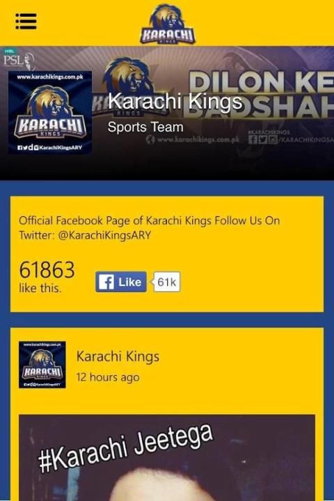 ia tim Karachi Kings adalah tim yang paling mahal dari utama Pakistan T20 liga Pakistan Liga Super dan kelompok ARY adalah pemilik bangga waralaba eksklusif ini. Tim ini dilatih oleh South African Mickey Arthur dan dibantu oleh mantan pemintal kaki Pakistan Mushtaq Ahmed.