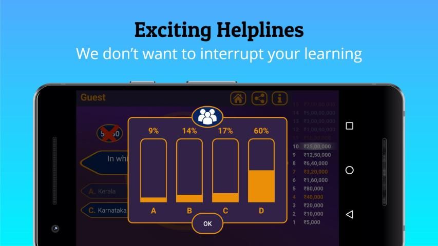 2. If you don't know answer, then don't worry. You will be having 4 help line to use which are: