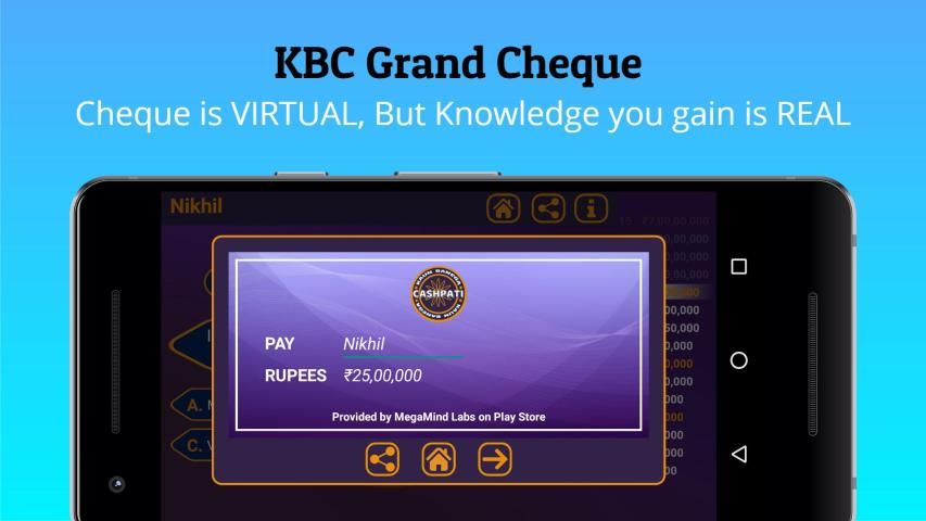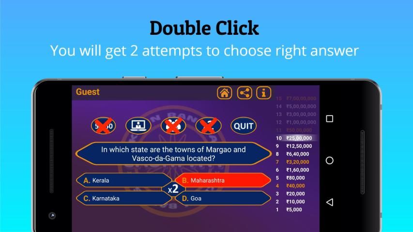 If you really like challenging yourself with GK Questions, then this KBC - General Knowledge Quiz App is just for you. General knowledge is a key concept for any hiring process either it could be Banking, IT or other professions. KBC game is exciting and thrilling and is made for you to increase your general knowledge and to be aware about the facts of India. KBC app lets you experience the thrilling excitement of fighting for the grand prize of 7 Crore through 15 challenging trivia questions. We do not give real money since this game is virtual but knowledge you gain from KBC app is real.