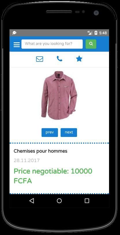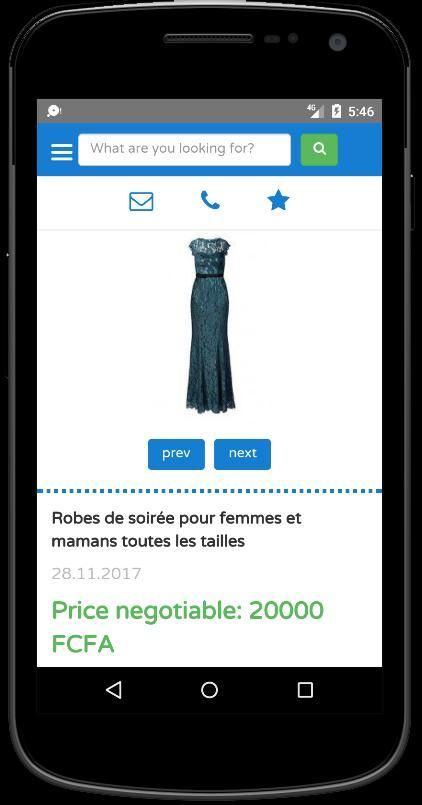 Its idea is based on the African marketplace concept where everyone can buy and sell any legal goods in a convivial atmosphere. We provide the platform and interface to advertise, share and sell any product and article, new or second hand. It is the best place for finding and buying goods in your area.