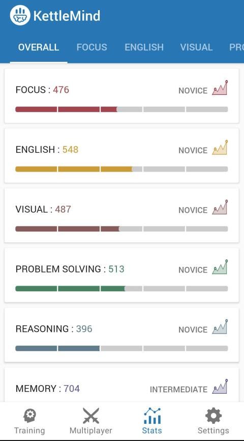 Buat skor baseline Anda dengan game pertama Anda dalam 10 menit bermain dan lihat bagaimana Anda tampil dengan orang-orang seusia Anda. Dengan KetteMind Anda dapat bekerja dengan program pelatihan otak yang disesuaikan, membuka wawasan mendalam tentang cara Anda bermain, dan memperbarui kiat untuk ketepatan, kecepatan, dan strategi yang baik.