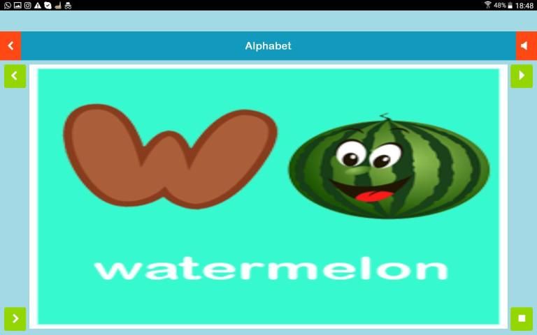 misalnya (A itu bisa Apple, dan b itu bisa Bird, dan C itu dapat Cat, .....) dan cara itu anak Anda belajar bagaimana pengucapan dengan cara yang mudah dan sederhana, dengan lagu yang sangat bagus,