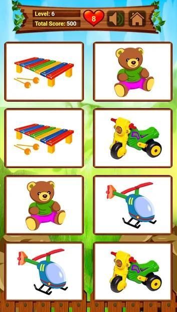 Kids memory game helps you to improve your memory, it Contains toys images.