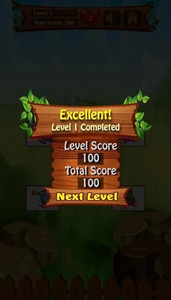- Once each level is successfully completed congrats screen will appear with current level score and total score (Addition of completed levels)