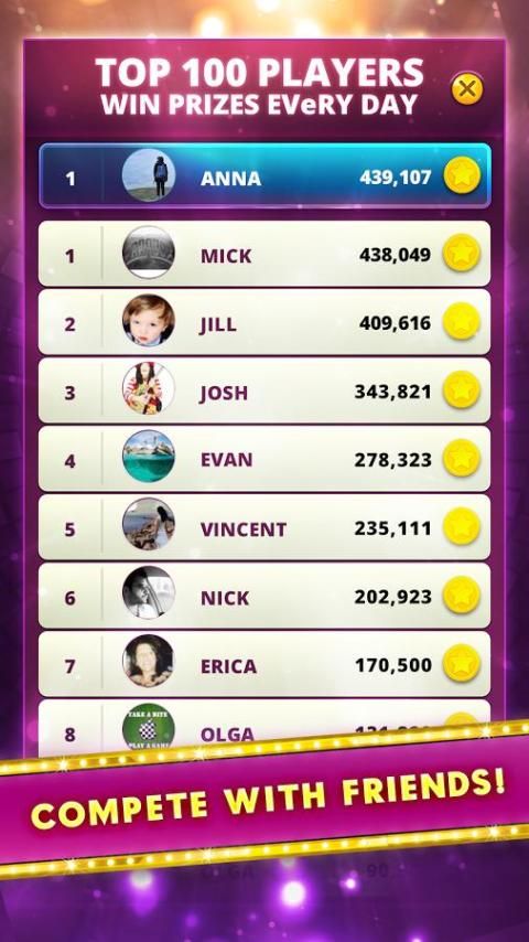 • Atas kontes harian untuk menang besar di kolam hadiah dengan teman-teman Anda