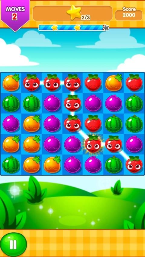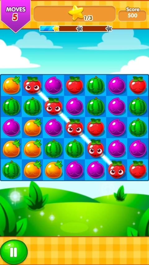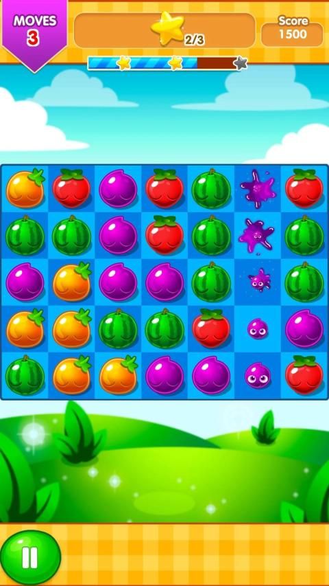 Cocokkan 3 buah dengan Buah, bertukar permata dan permen untuk menyelesaikan setiap level.