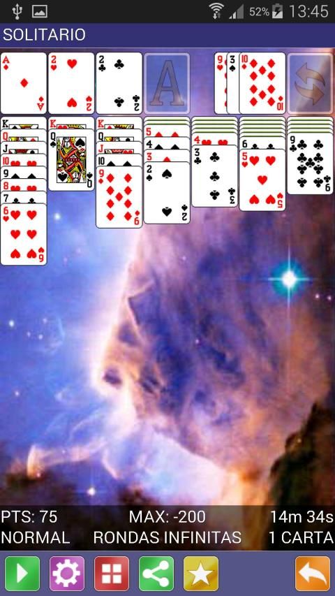 - Solitario Klondike 1 carta y 3 rondas