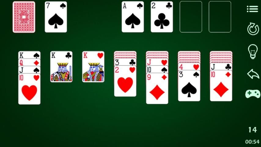 - Tiga tingkat kesulitan: menarik 1 Klondike Solitaire (mudah), menggambar 3 Klondike Solitaire (menengah dan keras)