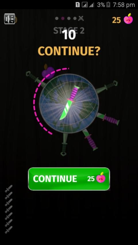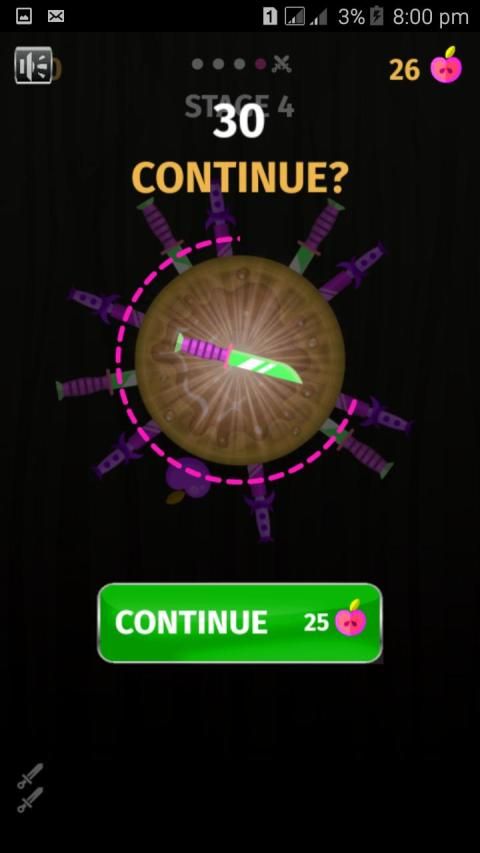 Memukul pisau yang ada memungkinkan Anda memulai kembali setiap tahap. Anda harus memenangkan setidaknya empat tahap di setiap level untuk melawan bos.
