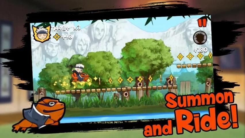 Sepanjang jalan, Ninja bertemu banyak rintangan dan musuh menakutkan, sehingga Gamabunta appearsto membantu Ninja naik.