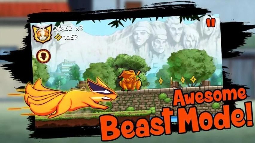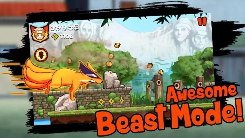 Game Konoha Ninja Badai Run memberikan karakter kekuatan kekuatan besar dari Sembilan-tailed Demon Fox, bersama dengan kemampuan untuk memanggil Gamabunta - kepala katak Gunung Myōboku.