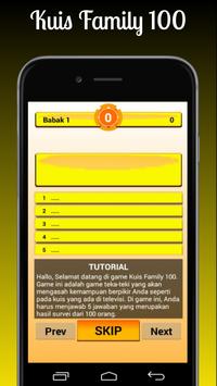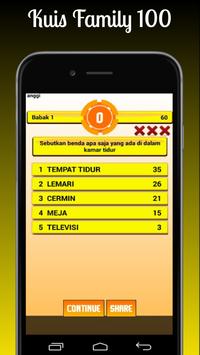 Anda akan menjawab pertanyaan yang dimana jawaban atas pertanyaan tersebut didapatkan dari hasil survey 100 orang. Jawaban yang muncul akan berhubungan dengan jumlah poin dari jumlah orang yang menjawab pada saat survey dan akan muncul di papan jawaban. Pertanyaan dan jawaban dalam permainan ini sebagian besar disadur dari permainan New Famili 100 yang saat ini tayang di TV Indonesia.