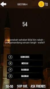 beberapa fitur dalam games ini. Total ada 70 pertanyaan di edisi perdana ini yang terbagi dalam 7 kategori. Semua pertanyaan terkait dengan pengetahuan tentang sejarah Islam, para sahabat, ulama dan mujahidin.