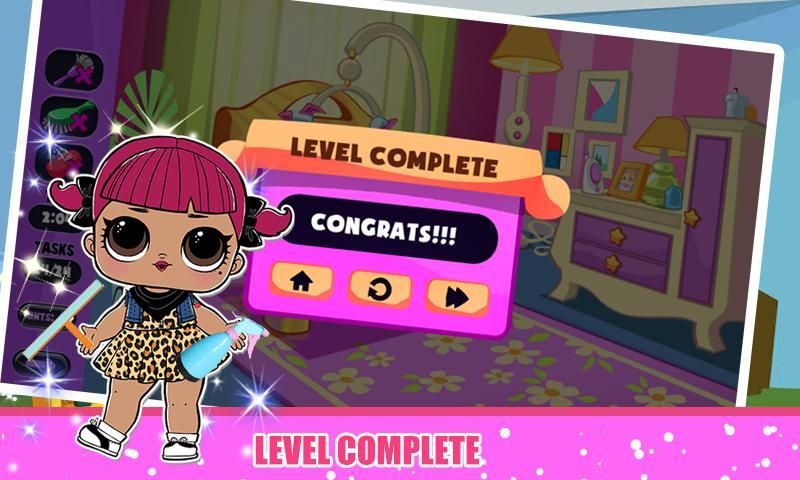 Kemarin boneka-boneka itu mengadakan pesta kepada teman-temannya. Jadi rumah impian mereka dalam kondisi berantakan. Boneka LOL membutuhkan bantuan Anda. Jadi bersihkan kamar dengan spick and span. Yang harus Anda lakukan adalah membersihkan barang-barang limbah dan menempatkannya di tempat sampah. Anda akan dipuji karena membantu hewan peliharaan boneka LOL yang putus asa.