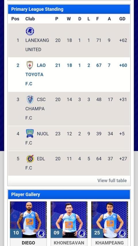 Resmi klub sepak bola profesional Hottest di Lao Premier League App