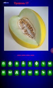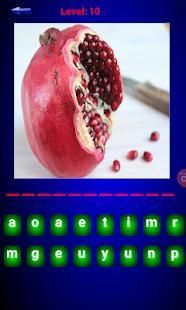 Викторина содержит набор фруктов, названия которых вы должны угадать при помощи предложенного набора букв. Тест можно проходить на родном или иностранном языке.Можно потренировать свои ботанические и лингвистические навыки. Проверьте как хорошо вы знаете тот или иной фрукт. Приложение имеет простой интерфейс и красивую графику с выбором языка.