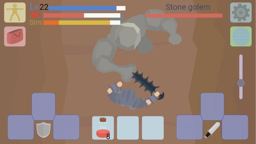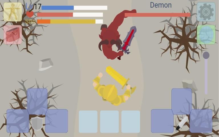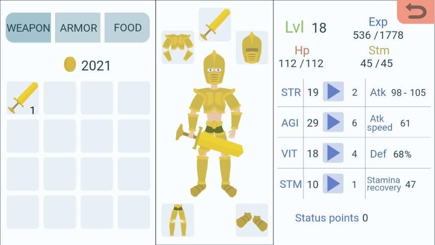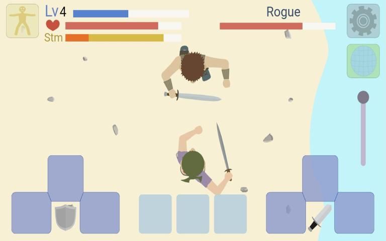 The game has a unique battle system with three directions of strikes and blocks. Reflect strikes in the right direction otherwise skip the beat. Reaching a new level, improve strength, agility, vitality and endurance.