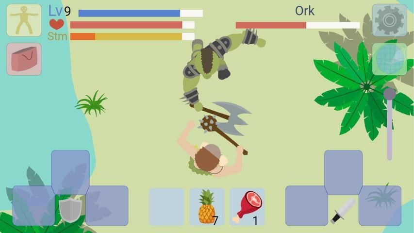 Move around the island, discover new locations with new opponents. Also, along with some locations will open merchants. Get new armor and weapons in battles. Restore health with different foods. Good luck!