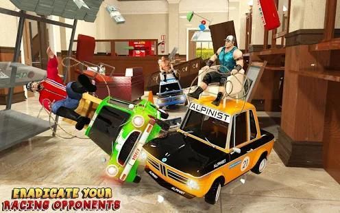 is a survivor royale car crash derby with flavour of showman John in unique style car racing fever. Hop your favourite pro wrestler Superstar Tripple H, The Giant Rock on office chairs to kickoff racing rival. clash, drift and dodge survivor royale to strive as last man standing with Rules Of crash Arena Survival car battle arena.