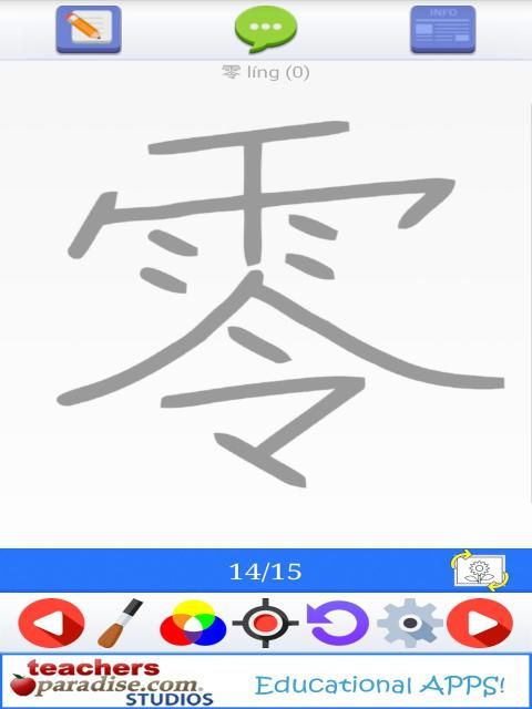 How is it possible to learn to write Chinese characters easily? We, at TeachersParadise.com Studios, have made it simple to start to learn Chinese with our step by step Chinese writing guide. With this educational app you will learn to write Chinese symbols and number characters, one step at a time drawing each stroke carefully and at your own pace.