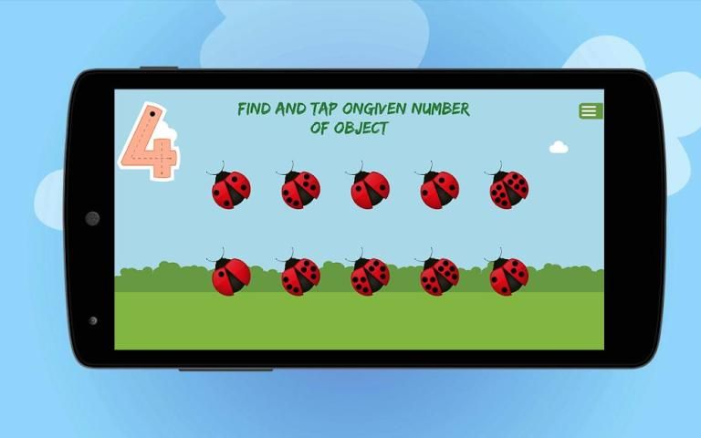 Install this simple and interactive app in your Android device and start playing with numbers. Tap on the numbers from 1 to 10 one by one. Each number has 5 different activities which help kids to learn counting and tracing the numbers.