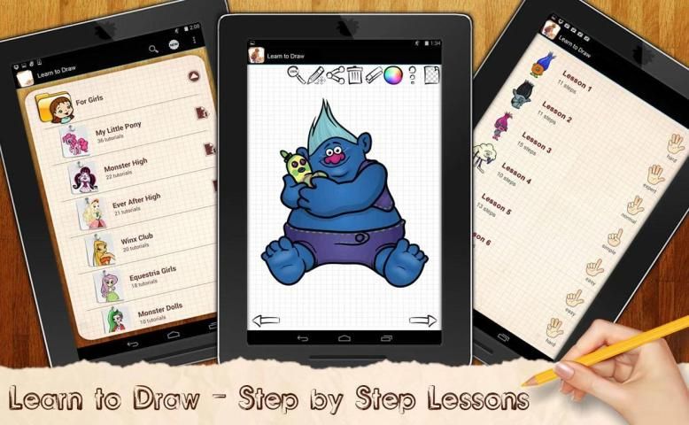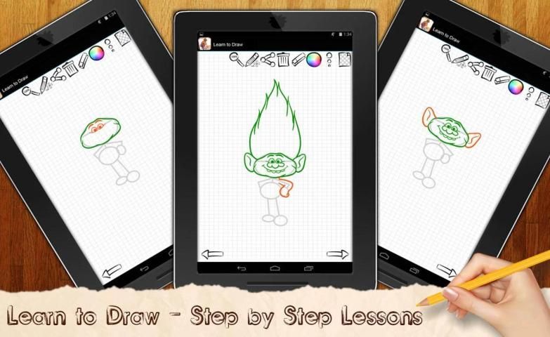 Kami sudah menyiapkan petunjuk langkah demi langkah untuk menggambar masing-masing karakter, semua yang Anda butuhkan - adalah untuk men-download Trols aplikasi pada perangkat mobile Anda dan mulai menyenangkan Anda menggambar!