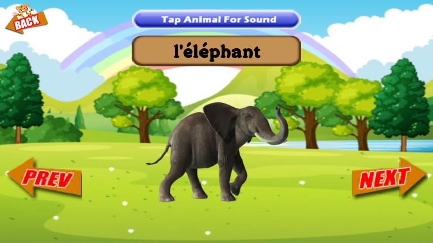 Lengkap dengan suara lucu, gambar lucu, dan rekaman tinggi huruf dan kata-kata, anak-anak dan orang tua akan senang menggunakan aplikasi ini untuk mengajar anak-anak mengenal binatang di Languanges Prancis