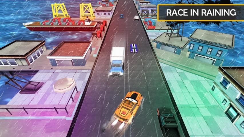 This cars fast racing game uses the real life physical of the lightning cars, which will give the awesome feeling of turbo fast traffic racing. Day, night and raining dynamic changing give you best experience to allow you to fast racing at any time. The real weather effect. Different cars controls and many upgrades.
