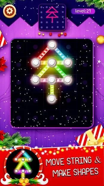 Line Puzzle Glow String Art in this Christmas drag and connect lines to make different glowing shapes. Ho-Ho-H0