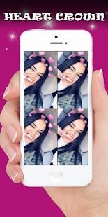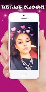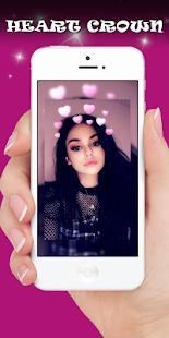 You can add funny stickers for Selfie photo: Heart Crown , Filters Crown , Cute Rabbit , Doggy Face , snappy photo , and coachella