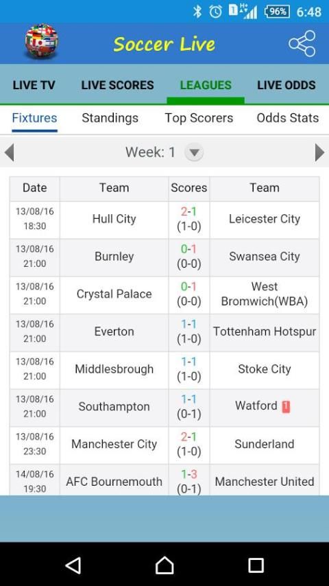 6. Info semua liga hampir negara di seluruh dunia: Liga Premier Inggris, Bundesliga Jerman, Divisi Primera Spanyol, Serie A Italia, Prancis Ligue, ...