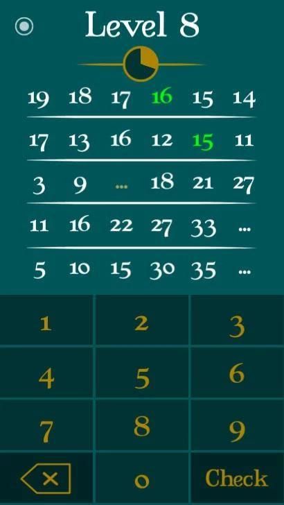 Dalam permainan ini Anda harus memecahkan sequences.You dapat melakukan ini dengan memasukkan nomor yang hilang.