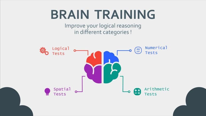 Aplikasi ini berisi beberapa dan beberapa tes IQ untuk melatih otak Anda. Tes-tes ini akan menantang penalaran logis Anda dan mengevaluasi kecerdasan Anda.