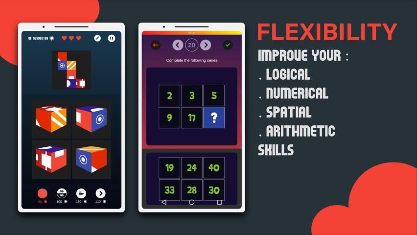 Aplikasi IQ ini juga akan meningkatkan penalaran, kecepatan, perhatian dan fleksibilitas Anda.