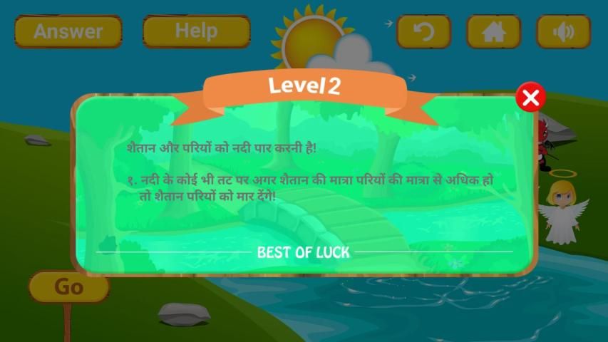 Aplikasi ini menyediakan animasi interaktif hindi sungai crossing puzzle yang membuatnya jauh lebih menyenangkan untuk