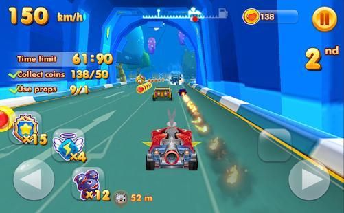 The First Time in Play Store you Can Play 3D racing go kart game with bugs bunny and lola and coyote the most funny game you will play you can attack you can be transformer you can do many things with Lonney Tunes Racing Kart 3D