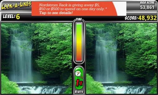 Amazingly similar, incredibly differentLookaLikes is not just another find the differences game.It features a choice selection of vivid and exciting pictures from public domain sources like: Department of Natural Resources, NASA and the US Government.The five changes you have to hunt down per level are skillfully crafted by our inhouse Photoshop guru. A few are easy, most are challenging, but some are downright masterfully hidden, so if you get stuck use one of the five hints allotted per game.The differences won39;t always be the same either, so keep looking, they look amazingly alike, but incredibly, they are different.The game checks for new levels each day when you play, so if you39;re a natural photo spy and feel you39;ve seen them all, play again tomorrow.You39;ll need an internet connection to download the levels and advertisements.A future version will have the option to fully cache levels to SD and optout of ads.LookaLikes, aka Look Alikes or lookalikes, is our first game and we39;d like to keep it free with ad support.If you like our game, we39;d appreciate your support by clicking a few ads here and there.Thanks