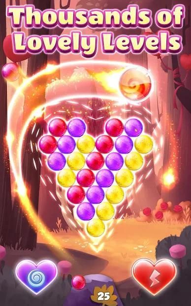 Spend your time playing the most romantic bubble puzzle game. Play now and discover thousands of addicting puzzles and challenges designed to train your brain and to take you to another level of entertainment. Download the most amazing bubbles game, hit and shoot all the colorful balls to clear the board and enjoy a relaxing fun time.
