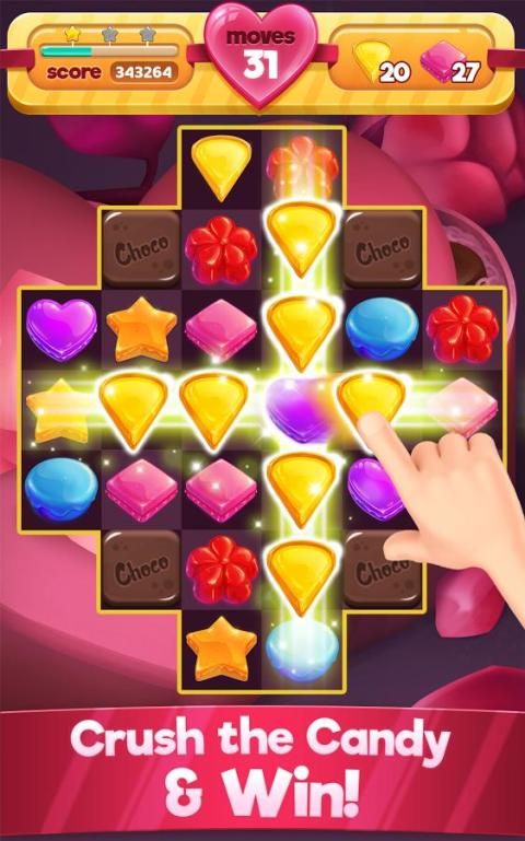 • Pindah dan pertandingan 3 coklat dari jenis yang sama meledak dan menang poin.