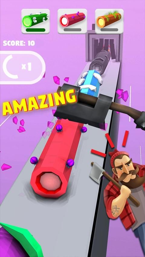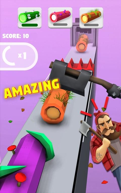 Akan ada warna log yang berbeda untuk memotong. Anda tidak dapat melewati level sampai Anda memotong log yang ditentukan dalam game. Segera setelah Anda melakukannya, Anda pindah ke babak berikutnya.