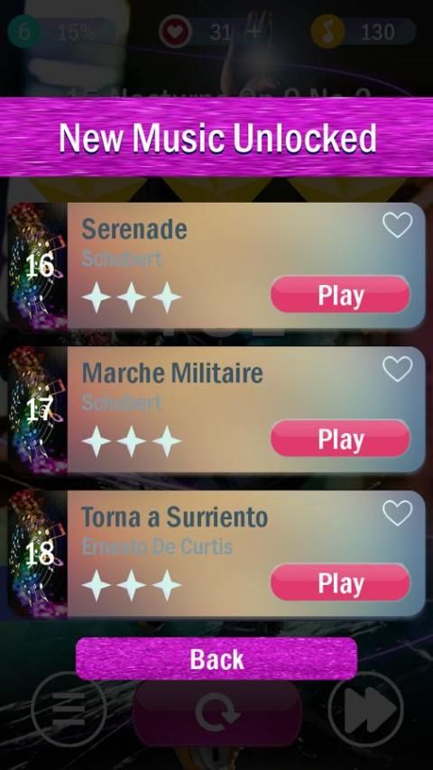 Setelah Anda bermain seluruh piano lagu, Anda dapat masuk ke mode ENDLESS langsung oleh tap tombol putar cepat.