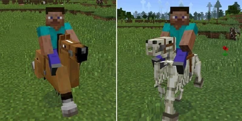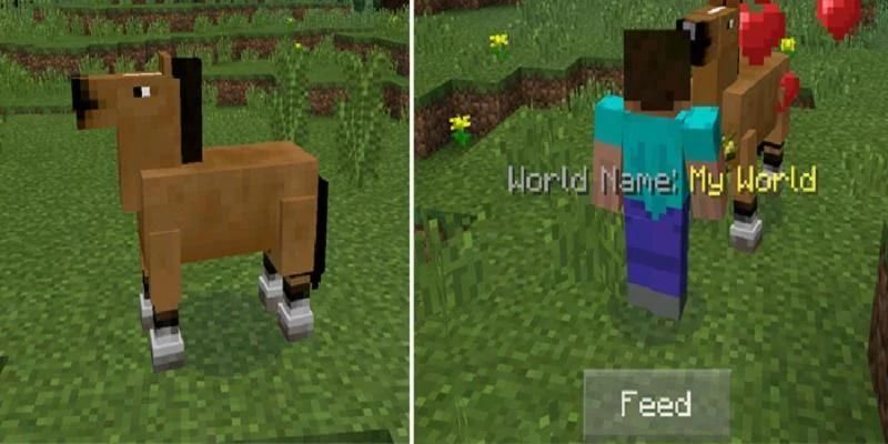 The Horses Mod menambahkan 10 jenis kuda. Kuda-kuda bisa dijinakkan dan digunakan untuk naik. Semua dari mereka akan menelurkan secara acak di dunia Anda, tetapi Anda juga dapat menggunakan telur bibit untuk bertelur mereka. Sebuah fitur yang besar adalah bahwa kuda akan menyimpan dalam dunia Anda setelah keluar itu.