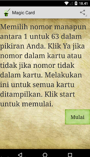 Permainan yang menyenangkan, cerdas menebak. Kartu sihir akan memberitahu nomor dalam pikiran Anda.
