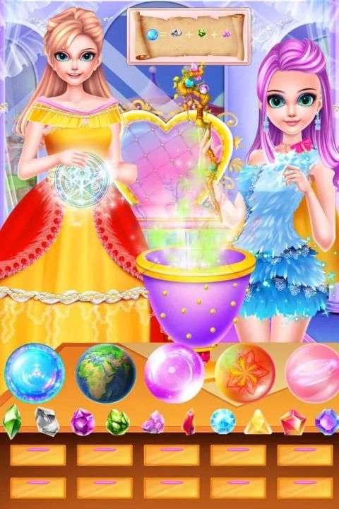 Lidia is a new school student. One day she found an amazing magic book in the grocery store. Because of the curiosity,she opened it carefully and there were a lot of magic cards. Then she put them in the right place. She opened the door to the new world:She was taken to the magic fairy world. There is a Magic Fair which people enter must obtain the permission of the Queen to have magic. So Lidia dresses up to visit the Queen and then she gets the magic. Lidia is invited to participate in the Magic Fair Fashion Competition. She is a hot player and beats Black Angel in the final PK. She gets the fashion crown of the magic fairy world. In order to celebrate this,Lidia holds a party and makes some desserts and juice for her friends. They like them. For she has been in the magic world for several days,she needs to synthesize five kinds of star stones which consists of three different magic stones. Finally she comes back to the earth safely and attend the opening ceremony on time. Now let's have a look!
