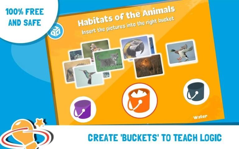 Ember - Buat permainan ember dengan menggunakan gambar, angka atau huruf dengan mengelompokkan mereka bersama-sama;