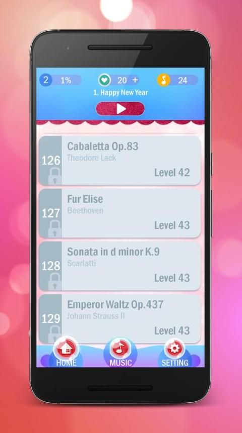 Sihir piano merah muda: Dalam modus klasik Anda harus tekan jumlah ubin dalam periode waktu minimum secepat u dapat menekan.
