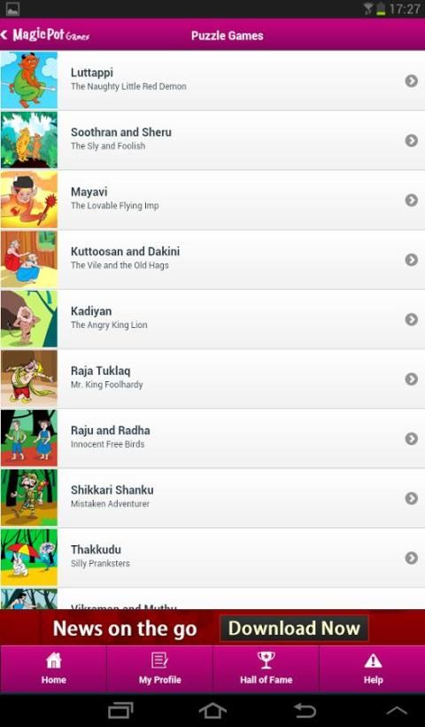 Ini adalah game berdasarkan karakter Toony indah dari Magic Pot, majalah aktivitas bahasa Inggris, dan Baladewa, majalah anak-anak hijau, baik yang berasal dari rumah Malayala Manorama. Nama-nama rumah tangga seperti Mayavi dan Luttapi, antara lain, sekarang datang lebih dekat dengan Anda melalui permainan dibawa ke anda oleh manoramaonline.com.