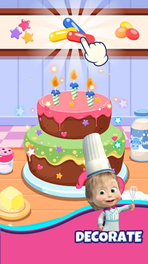 You can even eat your piece of cake when you're done! Mmm...Delicious! Masha loves sweets, especially when the plate delicious cake. Make colorful cupcakes, mix the ingredients and baking sweet cakes in