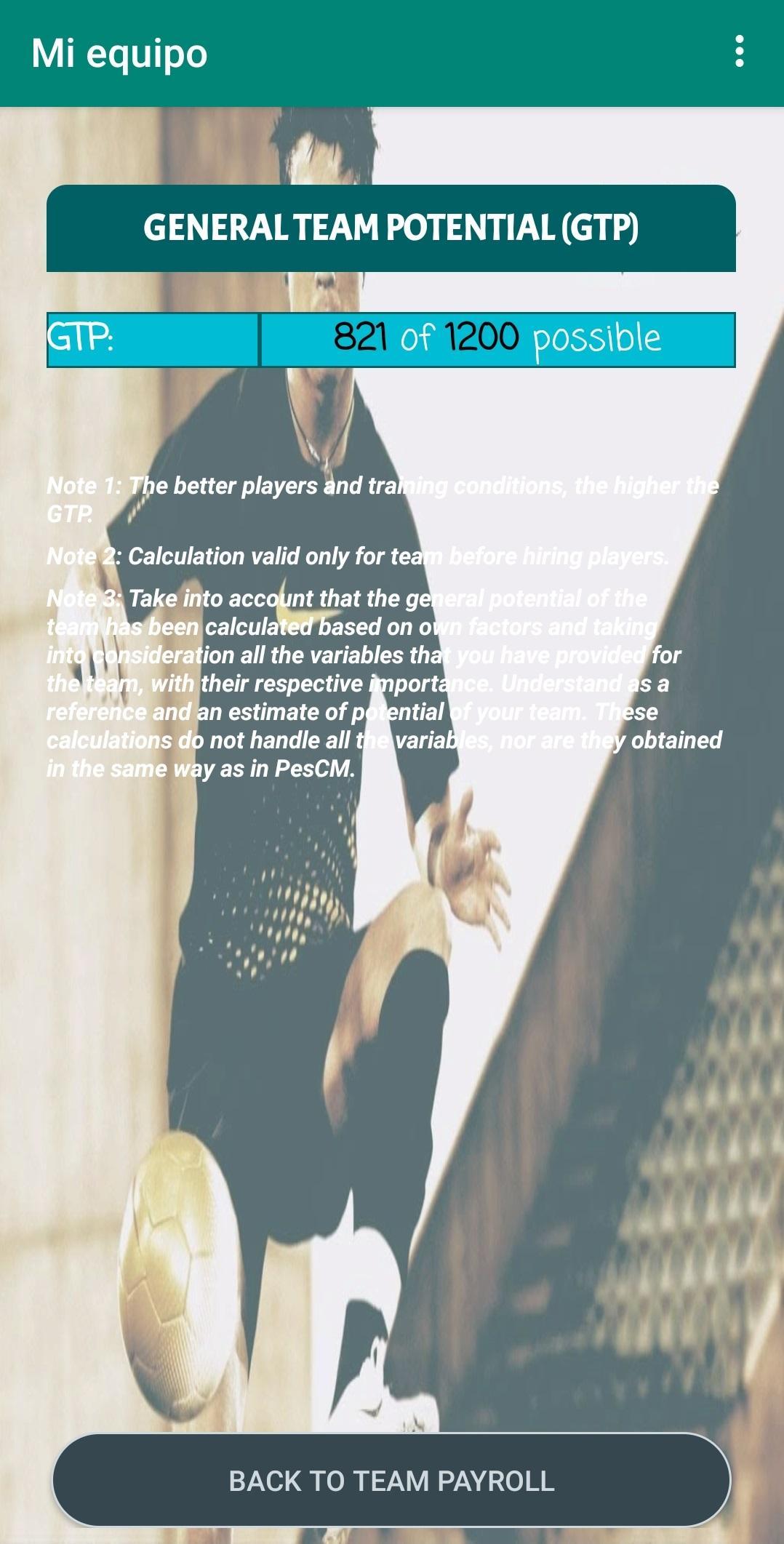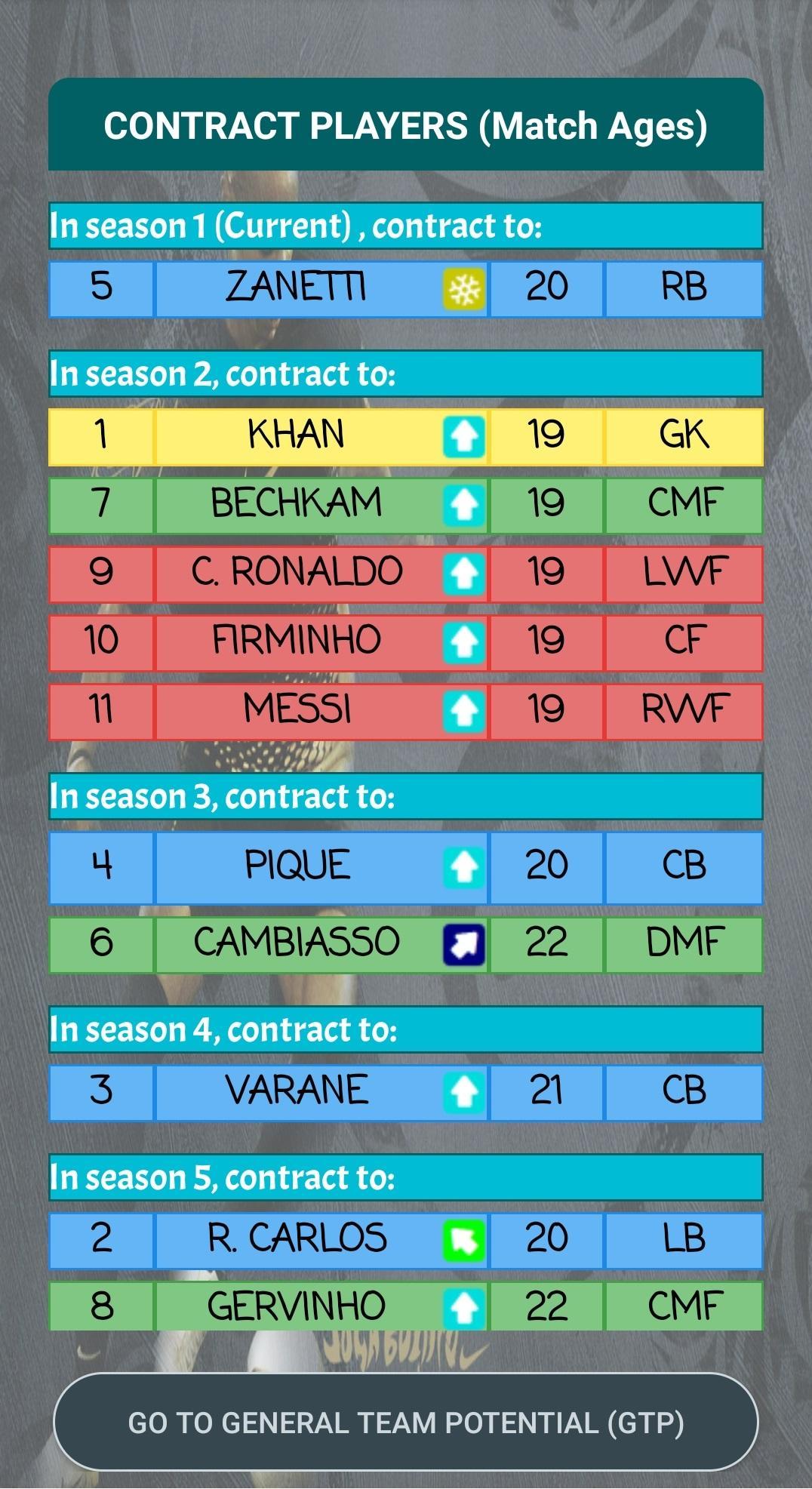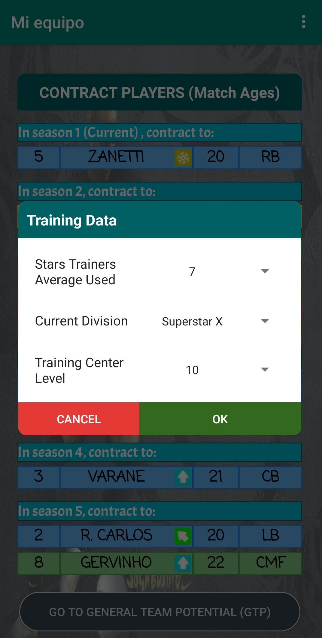 From the information provided, such as age, evolution, type of player, player stars, level of the training center, among others, you will be able to obtain the estimated general team potential (GTP) for your team.